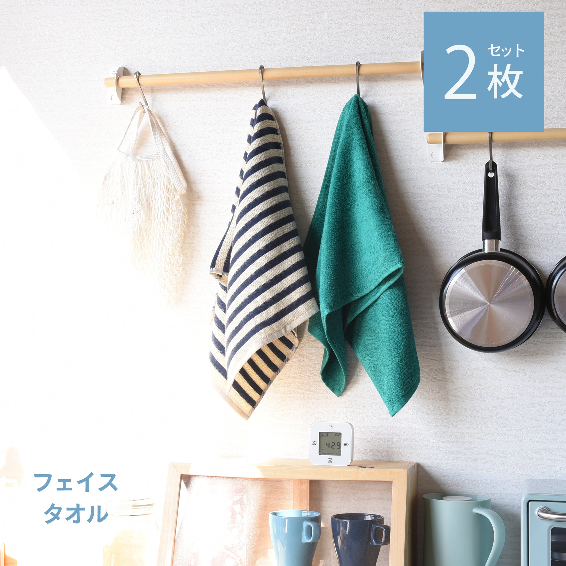Coordi Hours/ボーダー(絡め織)+カラー フェイスタオル2枚セット