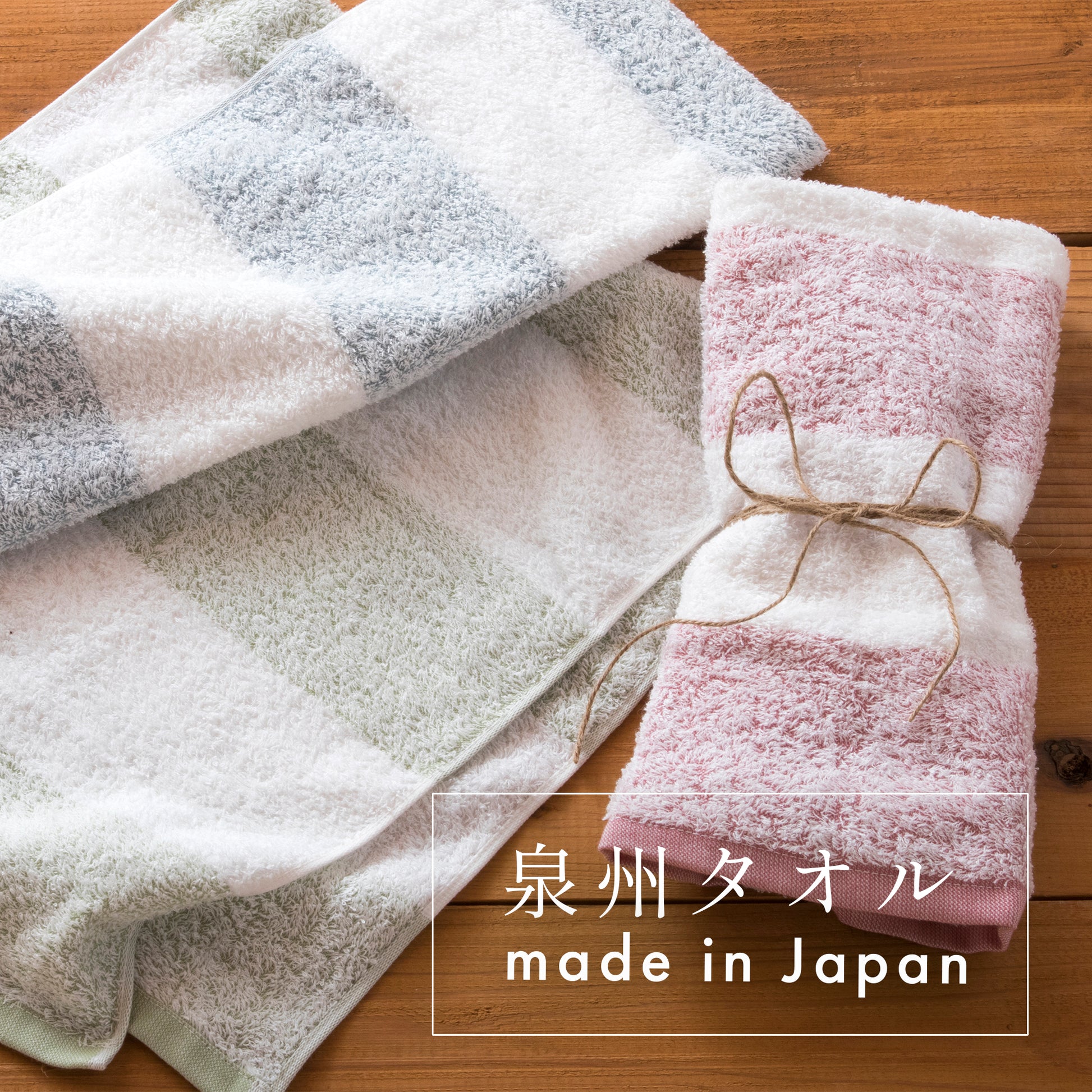 泉州タオルとは約130年の歴史と伝統を誇るタオル産地、大阪泉州地域で生産されるタオルのことで、吸水性にすぐれ、肌触りの良い、安心・安全な国産タオルです。