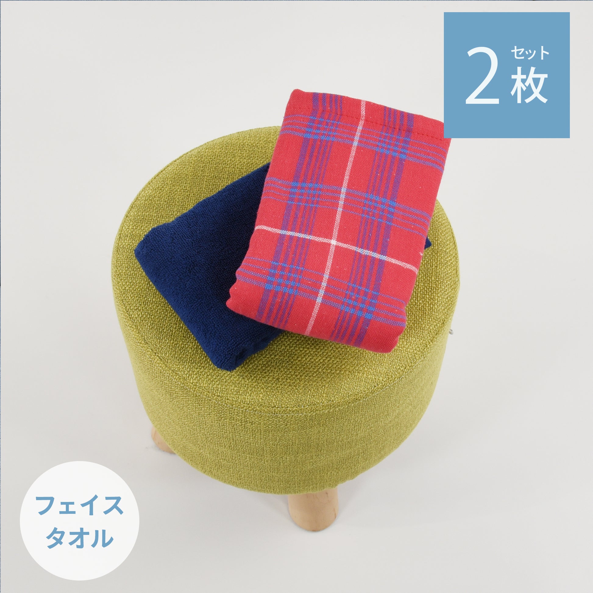 Coordi Hours/コーデ GauzeCheck(check&color)フェイスタオル2枚セット (レッド・ネイビー)