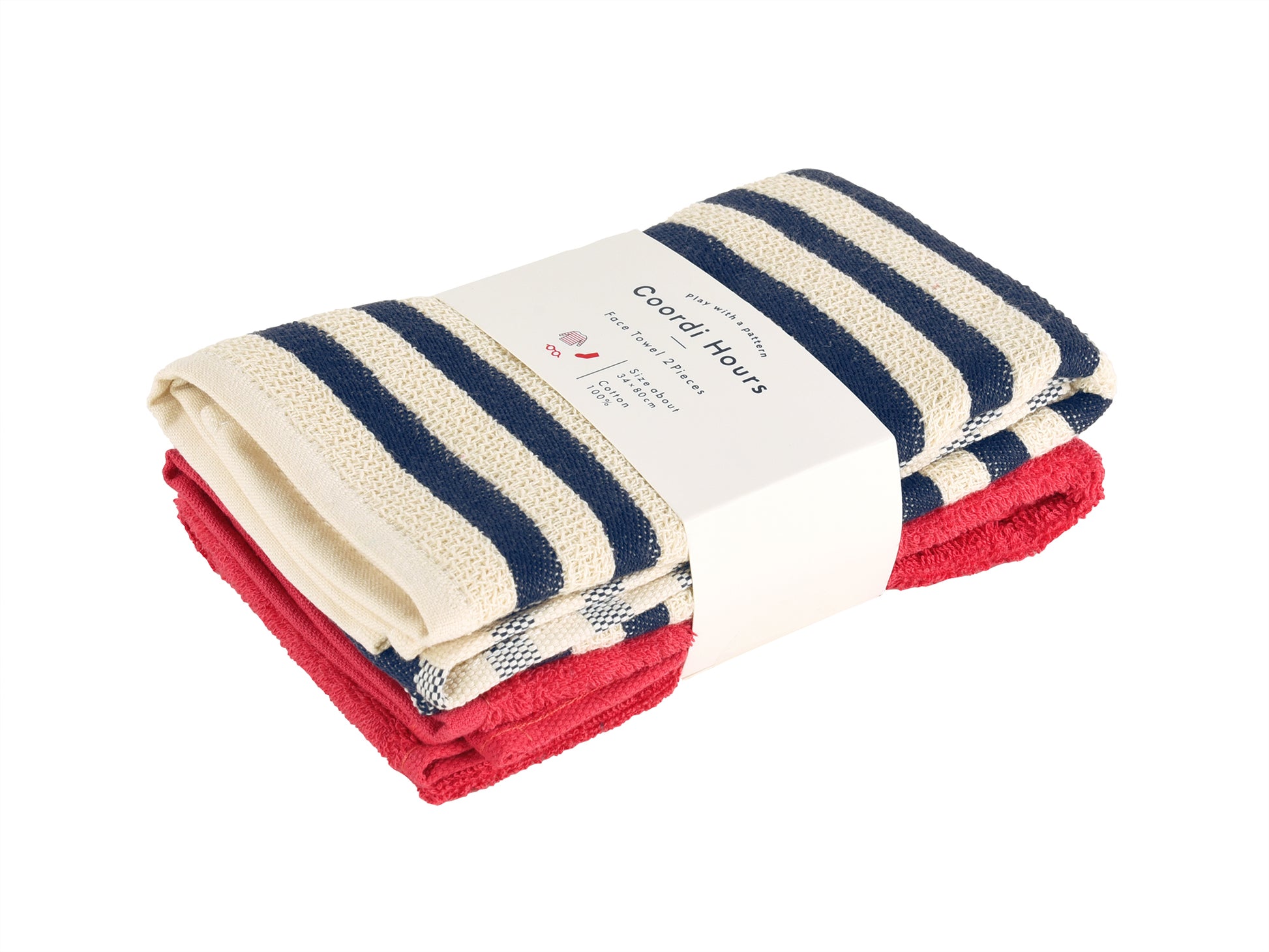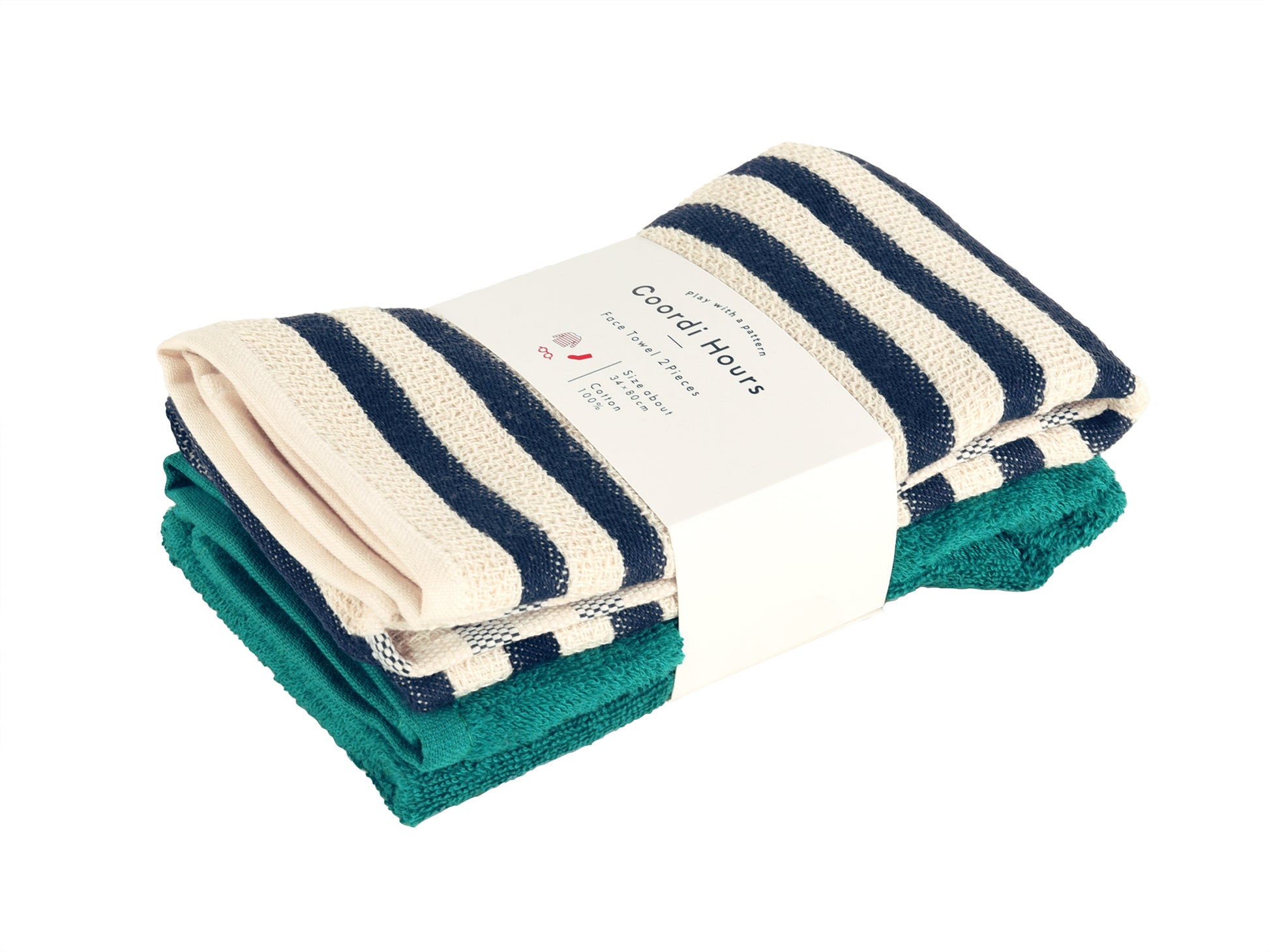 Coordi Hours/ボーダー(絡め織)+カラー フェイスタオル2枚セット