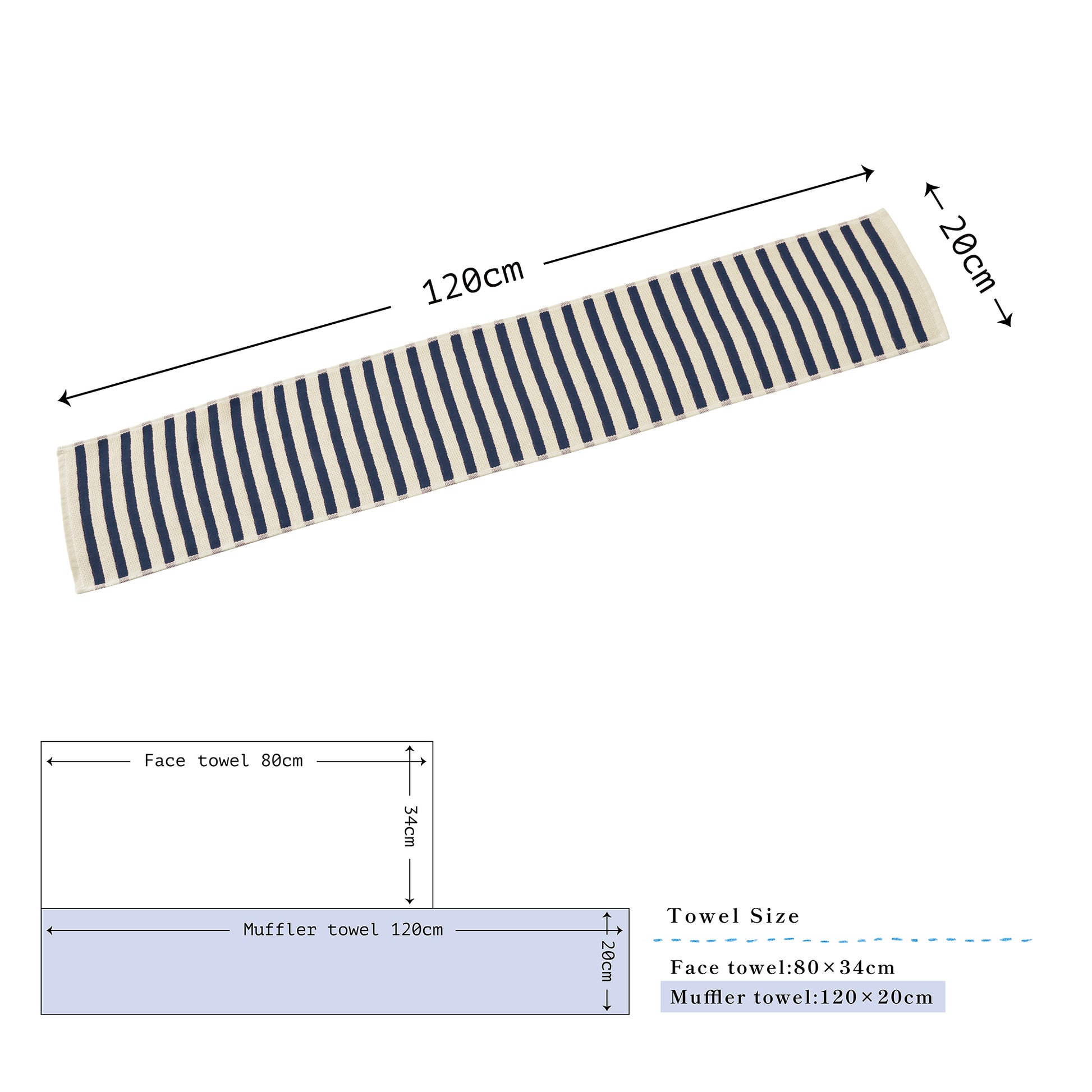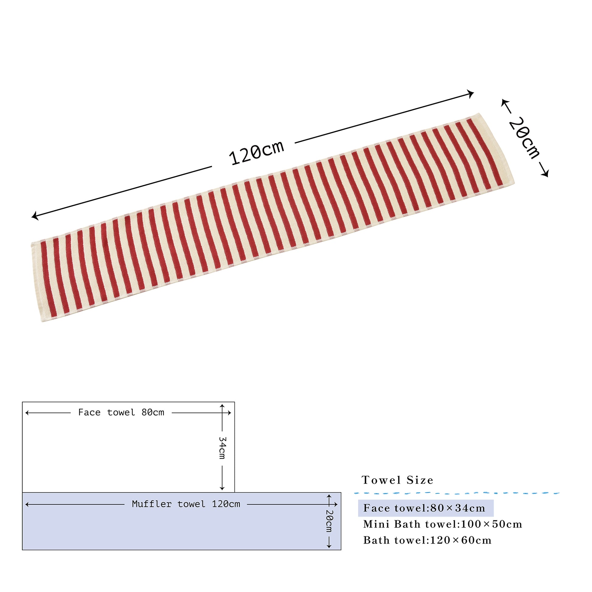 通常のフェイスタオルより長くて、首にかけやすいのが特徴です。幅もスリムなので、首元もすっきり軽量。 ウォーキングやお散歩、ジムやスポーツでも邪魔にならないサイズ感が魅力。