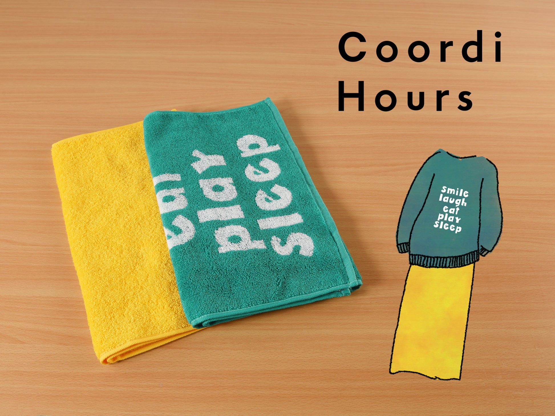 Coordi Hoursのタオルアイテムは、普段の使いやすさとおしゃれさをあわせもつタオルアイテムです。ポップでビビットなものからナチュラルなテイストまで!登場するアイテムやコーディネートは、どれも"シンプル&ベーシック"。長く愛されてきたパターンです。