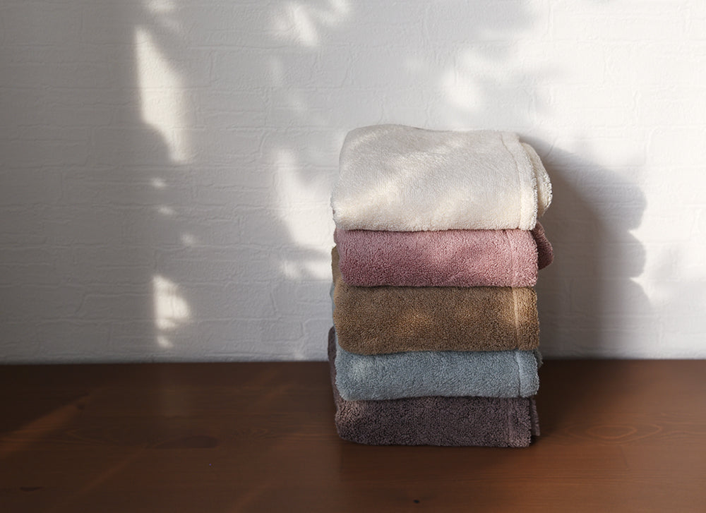 見た目のボリュームよりもずっと軽い中空糸パイルは、最初のお洗濯でよりふっくらとした風合いに。繊維の中へしっかり水分を吸ってくれるので、拭いた後もさらっとした気持ちよさが持続します。