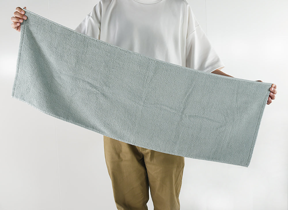 “巻いたり掛けたりに便利なロングフェイスタオル”