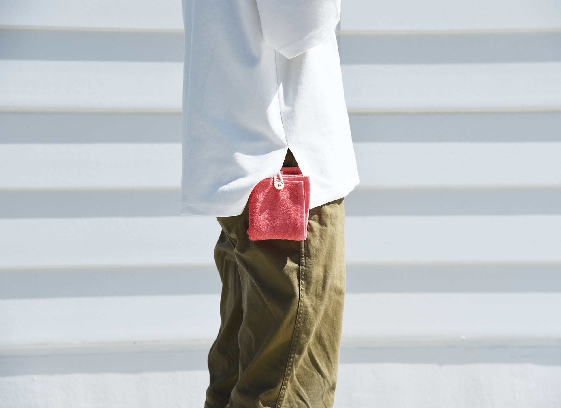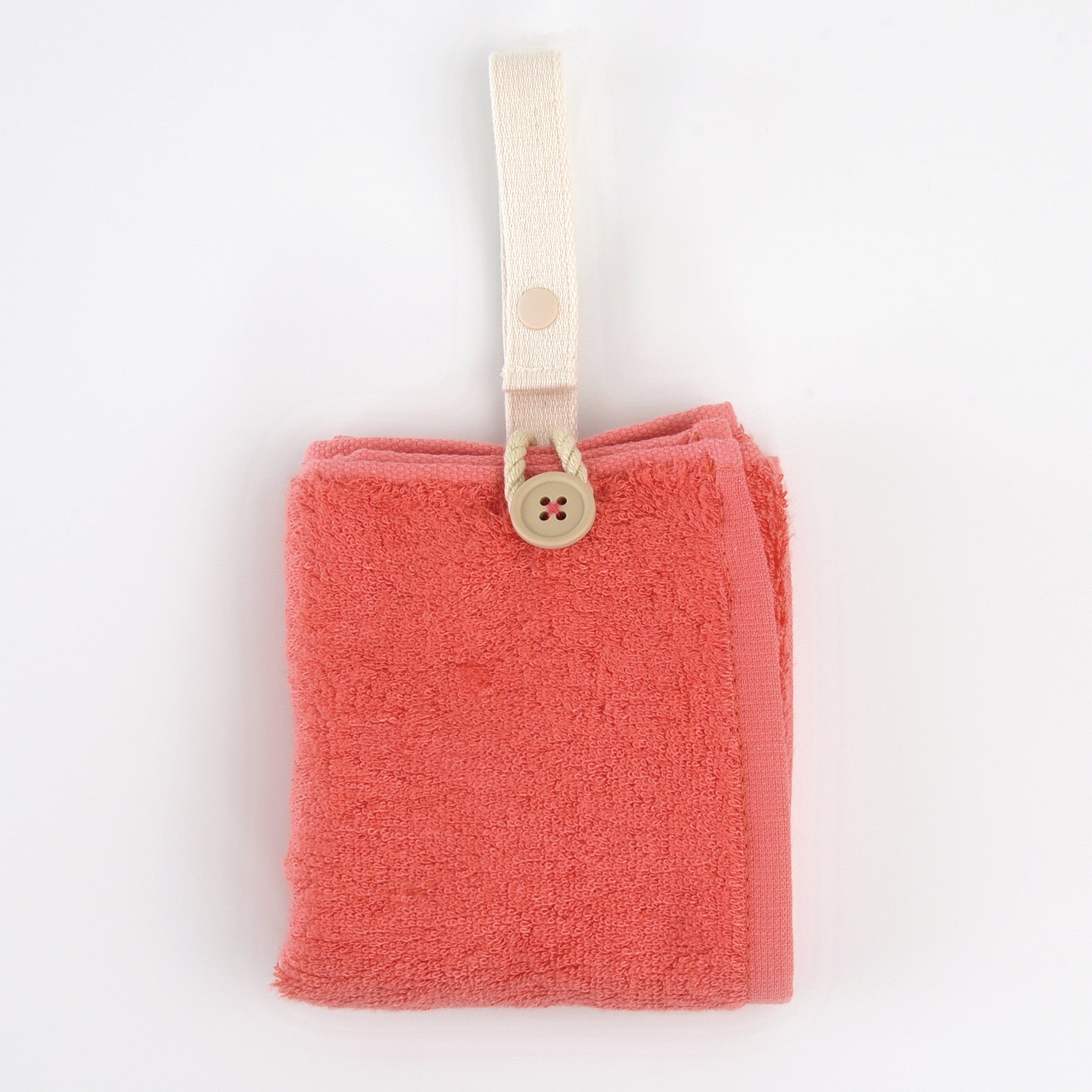 必要なときにさっと使えて、たたんで留めればコンパクトな手のひらサイズに。パイル部分には、サスティナブルな素材としても注目を集める竹を原料としたバンブーレーヨンを使用。シルクのような、なめらかな肌ざわりと高い吸水性・速乾性をもつ優れた素材です。最初のお洗濯でパイルが立ち上がり、ふっくらとしっかり拭けるボリュームに。抗菌防臭加工なので衛生的にお使いいただけます。