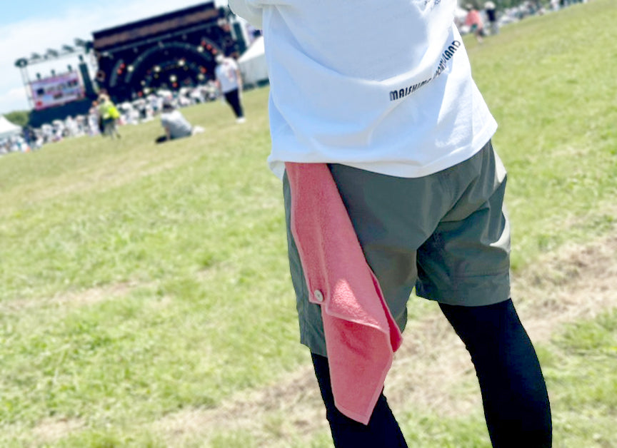 カラビナいらずで、もっと手軽につかえる“身に着けるタオル”