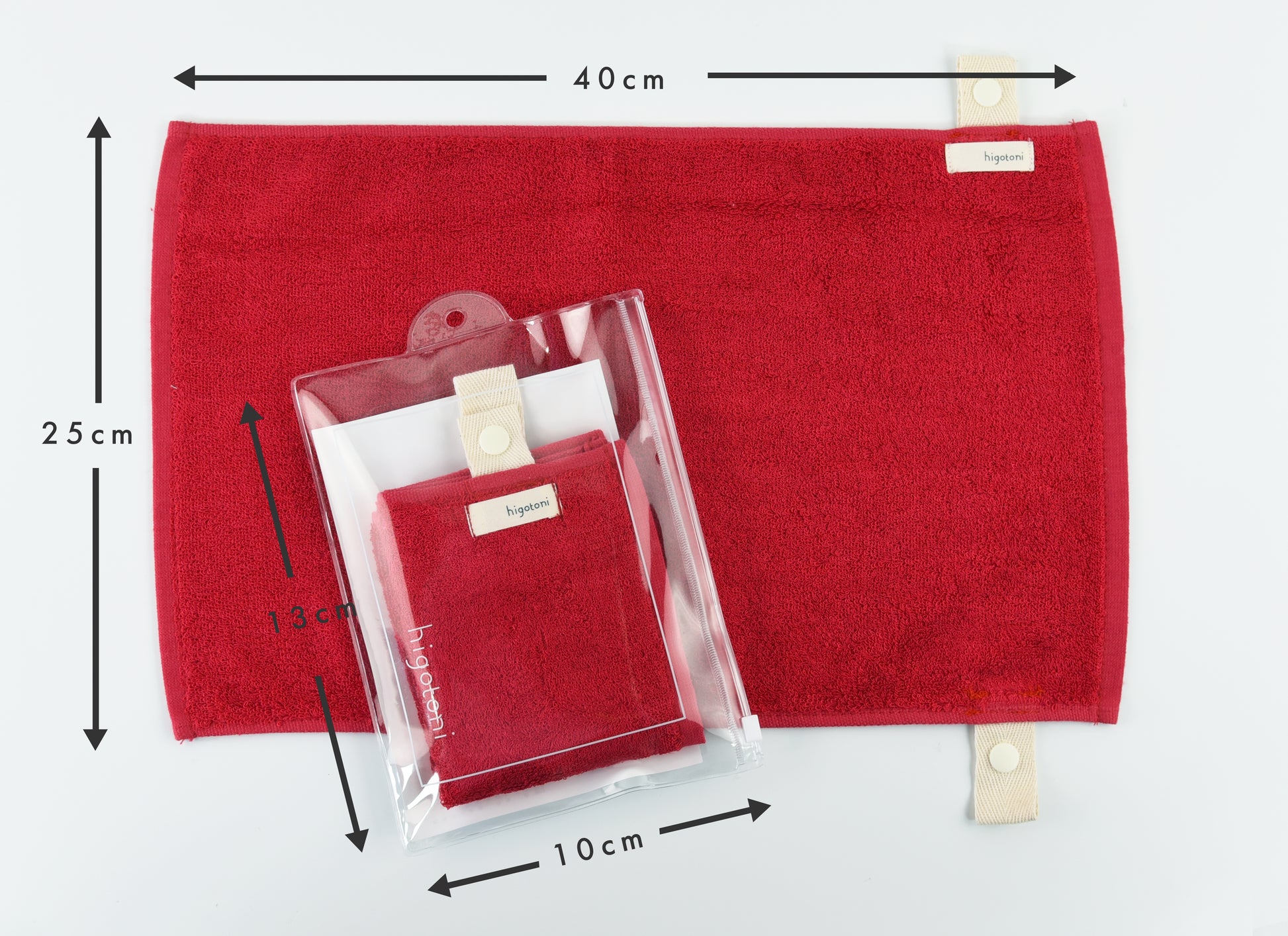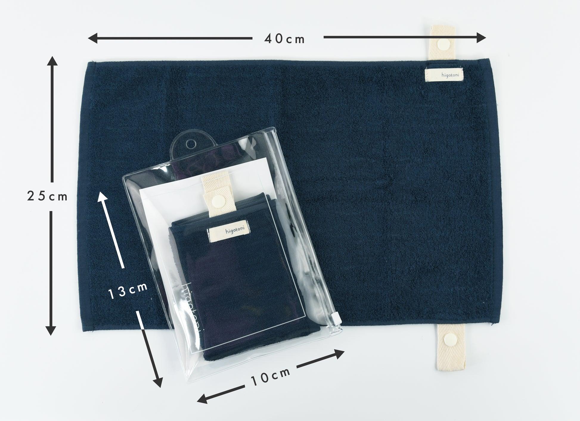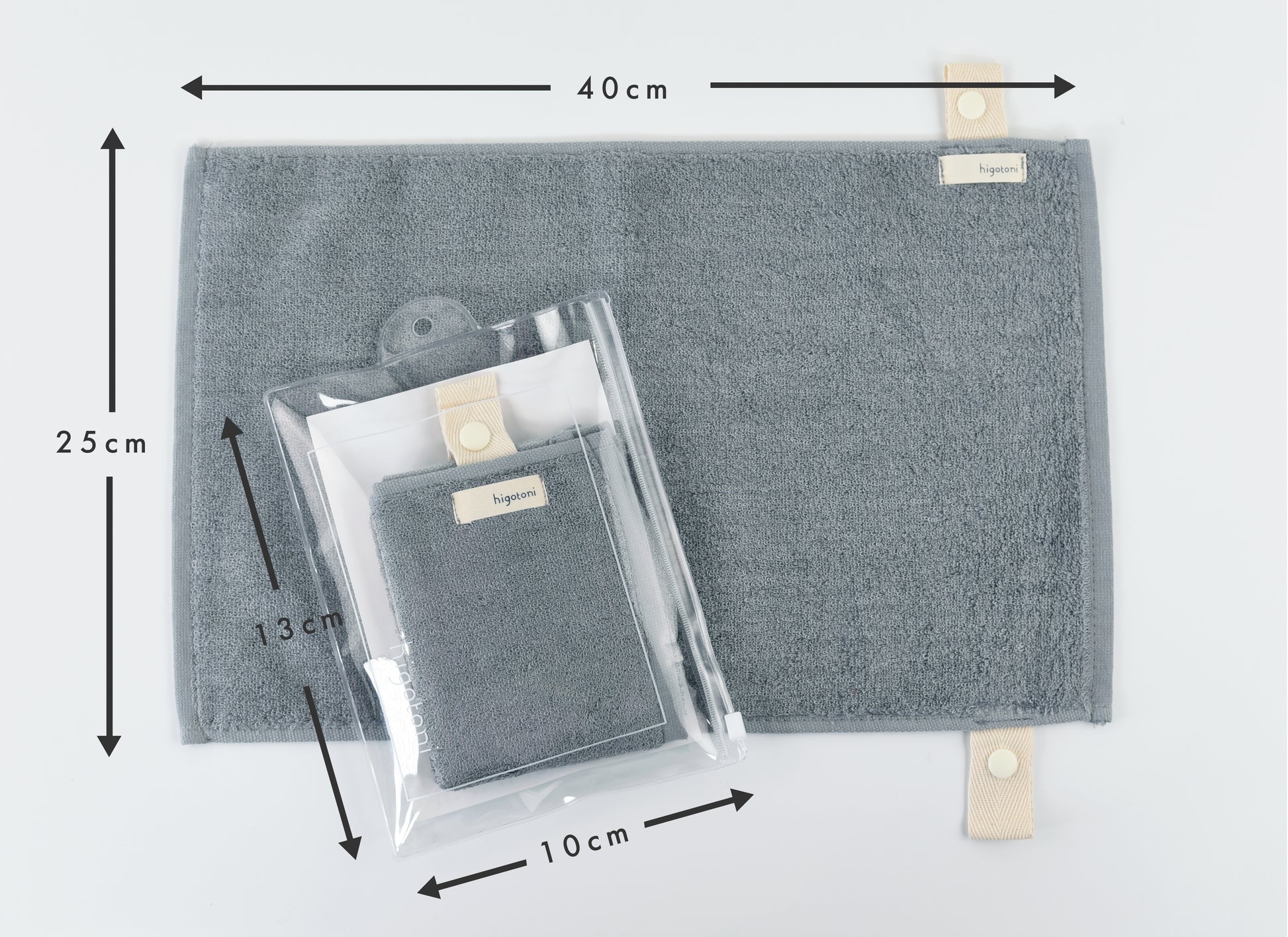 必要なときにさっと使えて、たたんで留めればコンパクトな手のひらサイズに。パイル部分には、サスティナブルな素材としても注目を集める竹を原料としたバンブーレーヨンを使用。