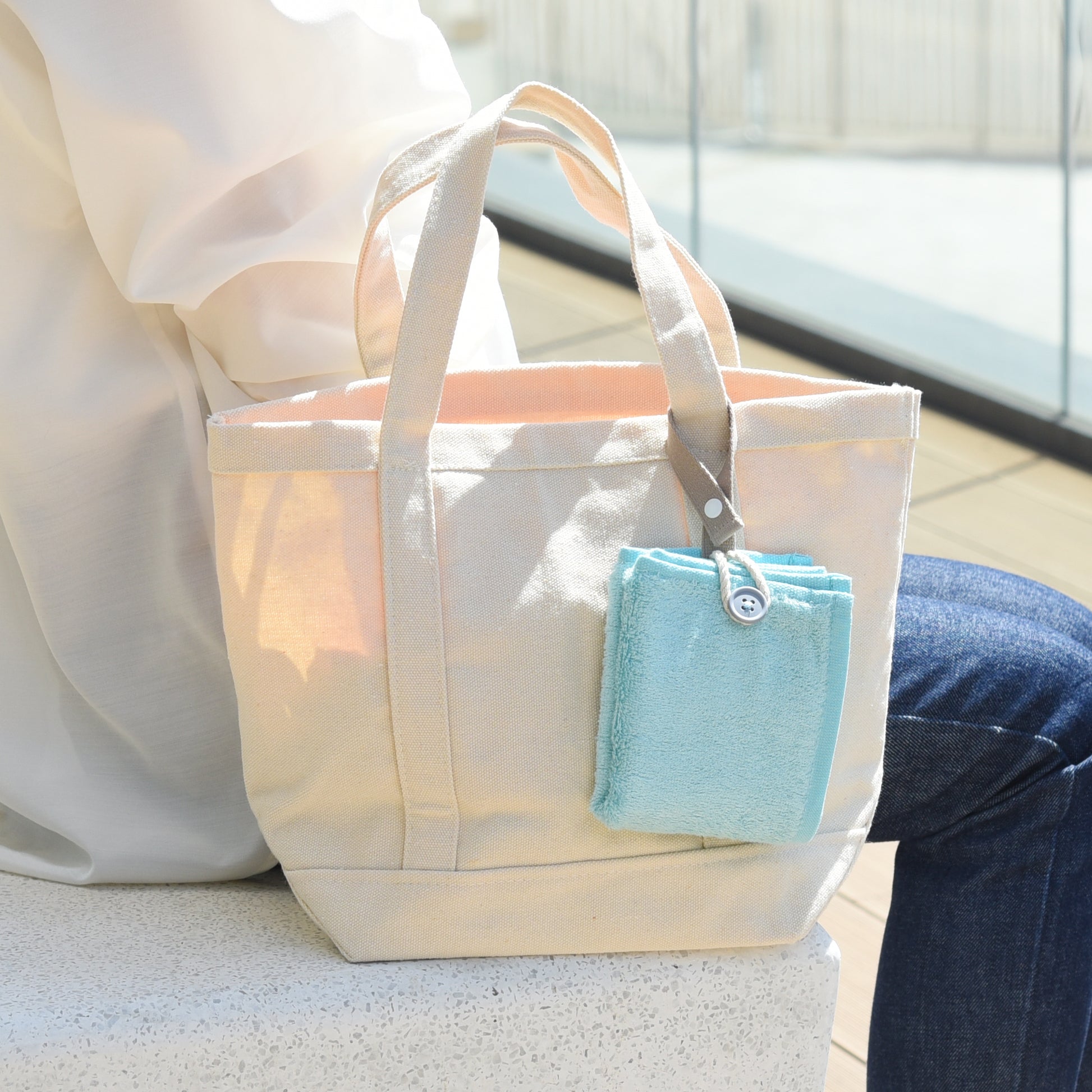 必要なときにさっと使えて、たたんで留めればコンパクトな手のひらサイズに。パイル部分には、サスティナブルな素材としても注目を集める竹を原料としたバンブーレーヨンを使用。シルクのような、なめらかな肌ざわりと高い吸水性・速乾性をもつ優れた素材です。最初のお洗濯でパイルが立ち上がり、ふっくらとしっかり拭けるボリュームに。抗菌防臭加工なので衛生的にお使いいただけます。