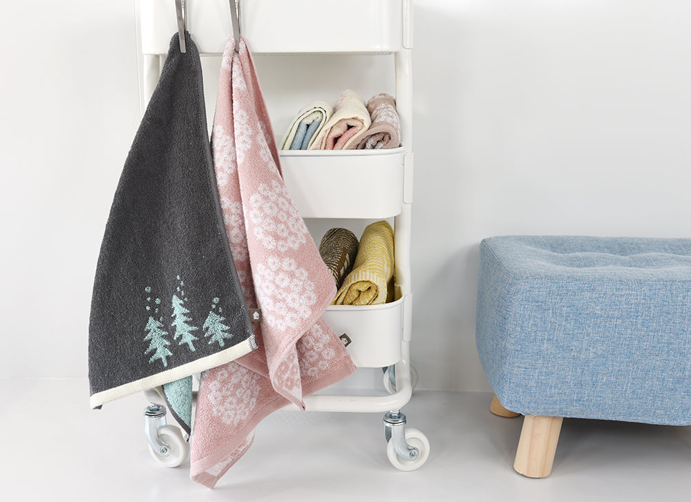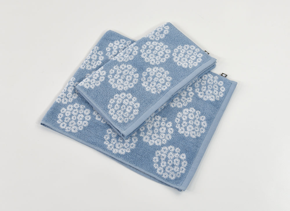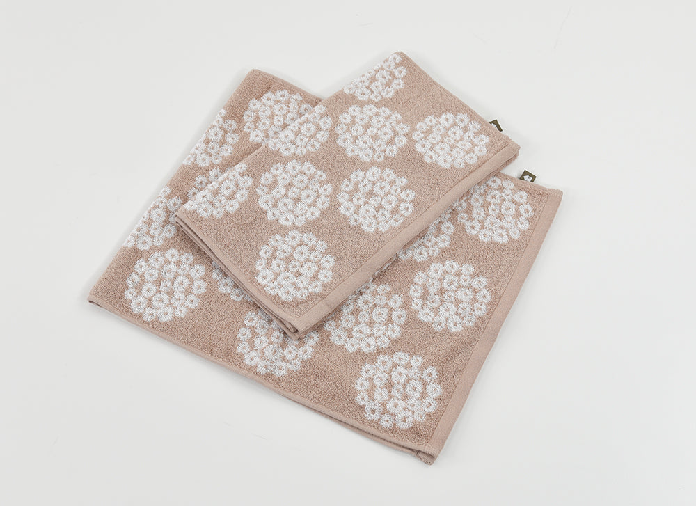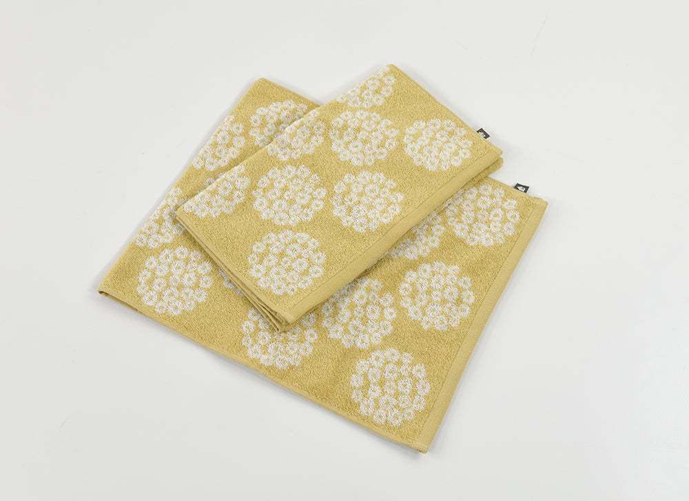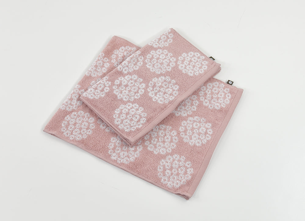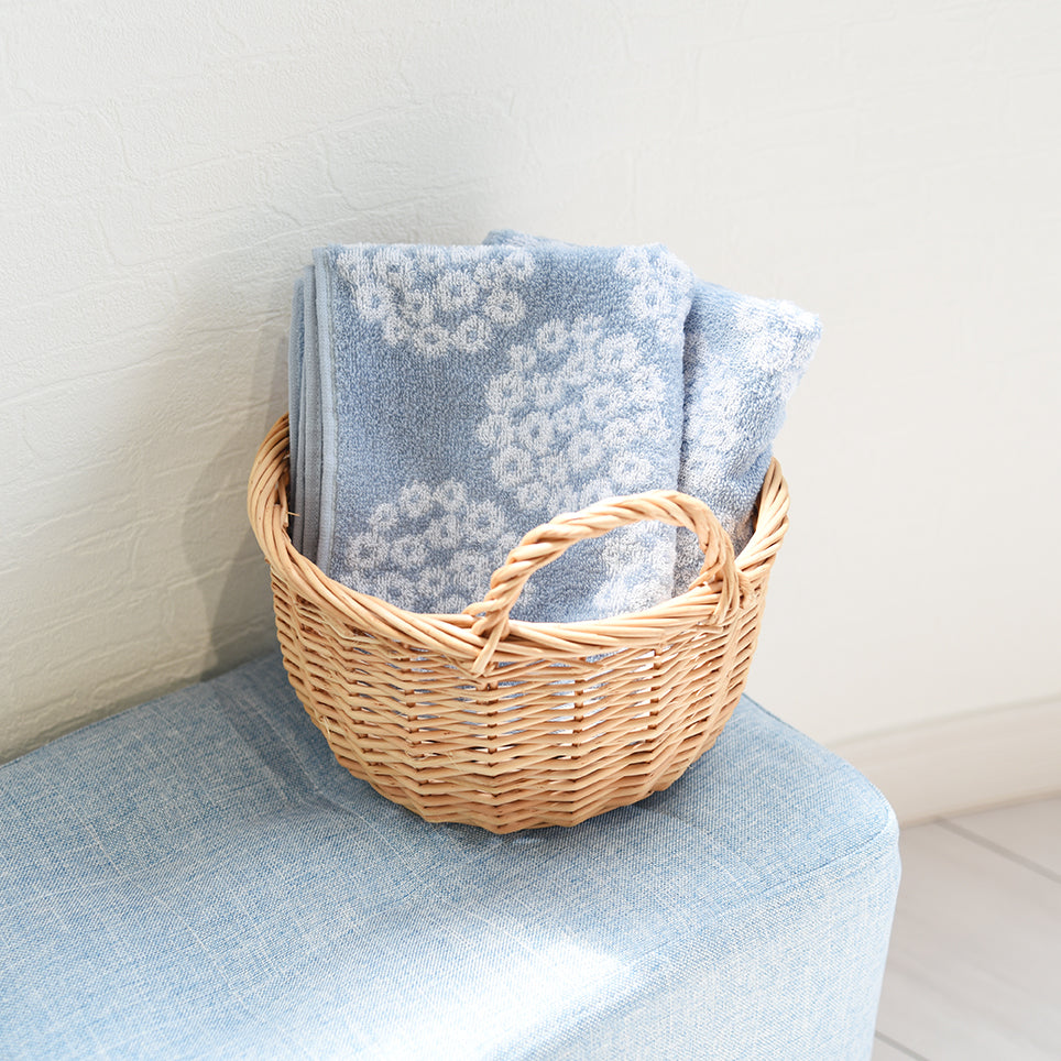 「花束」をモチーフにした北欧風のデザイン。「ピンク/ブルー/イエロー/ベージュ」の4つのカラーからお選びください。別カートにてバスタオルもご用意しています。