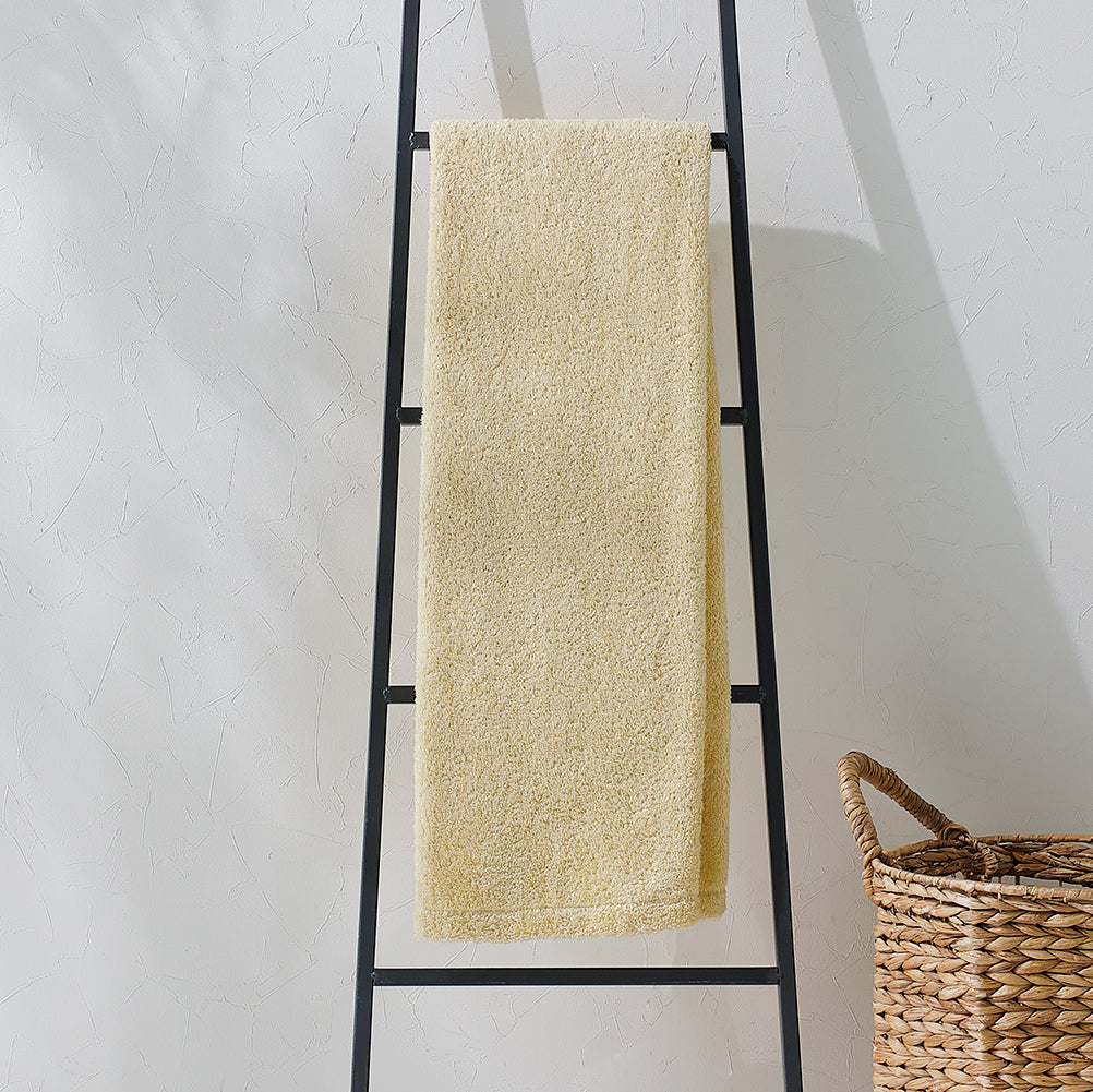 パイル糸は無撚糸100%でふんわりと柔らかく、優しいふんわりとほど良いボリューム感のタオルアイテムです。ボリュームと柔らかさが特徴です。