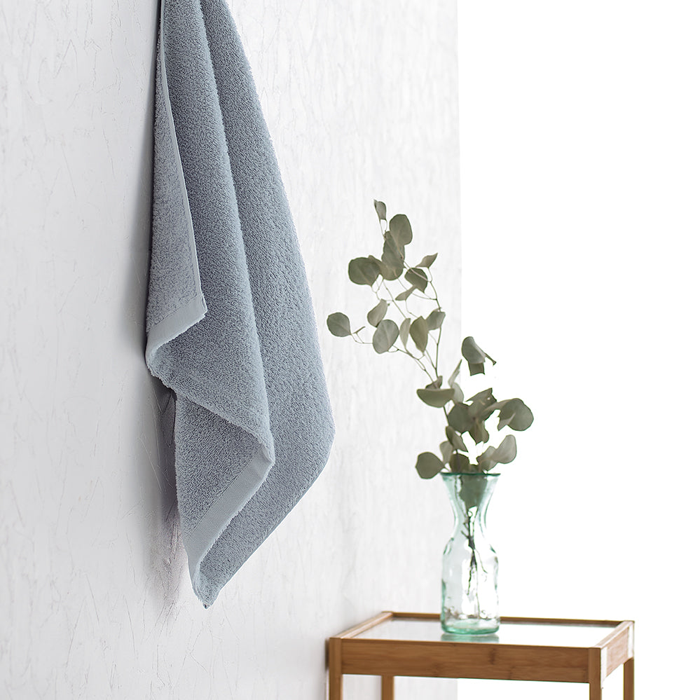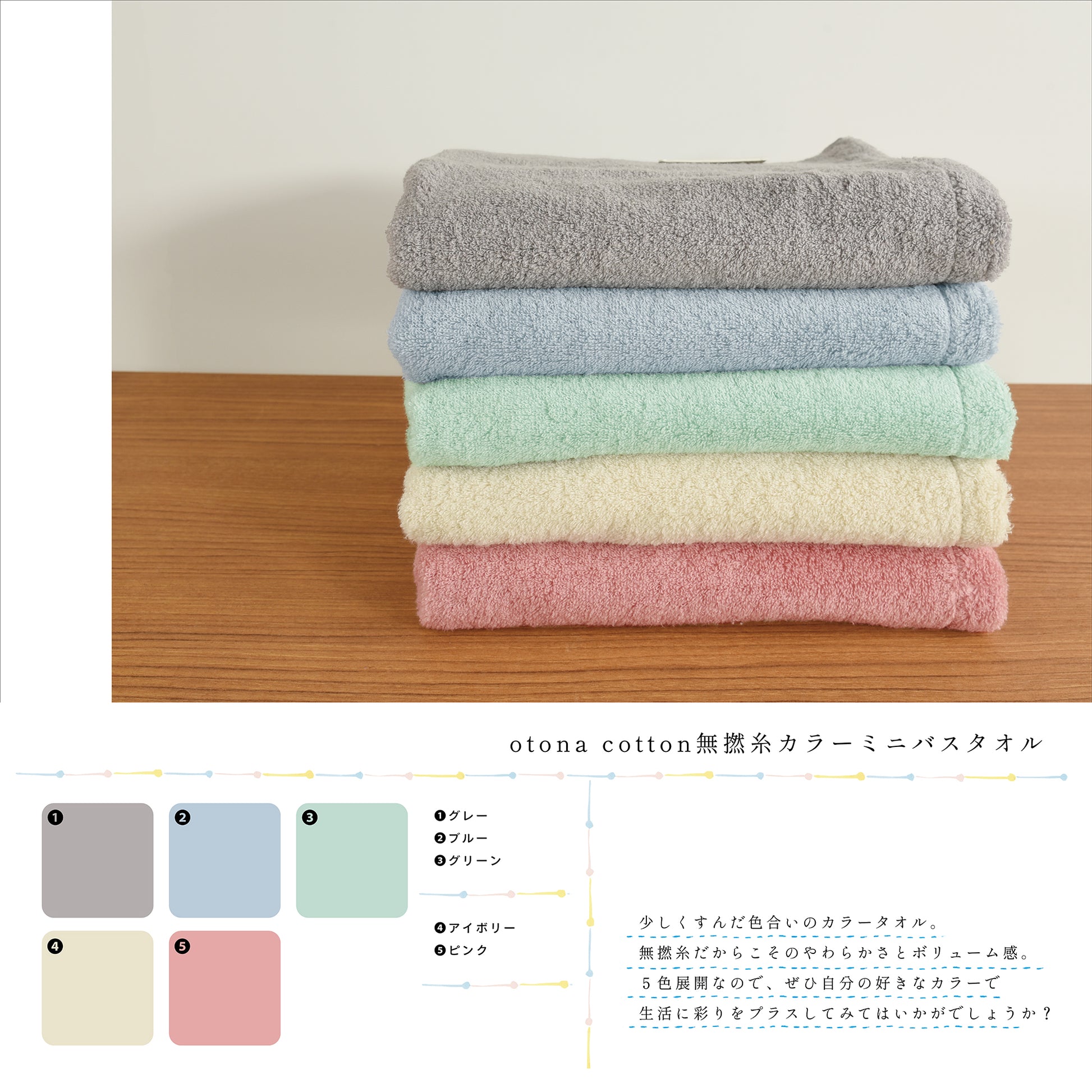 パイル糸は無撚糸100%でふんわりと柔らかく、優しい肌触りとほど良いボリューム感のタオルアイテムです。