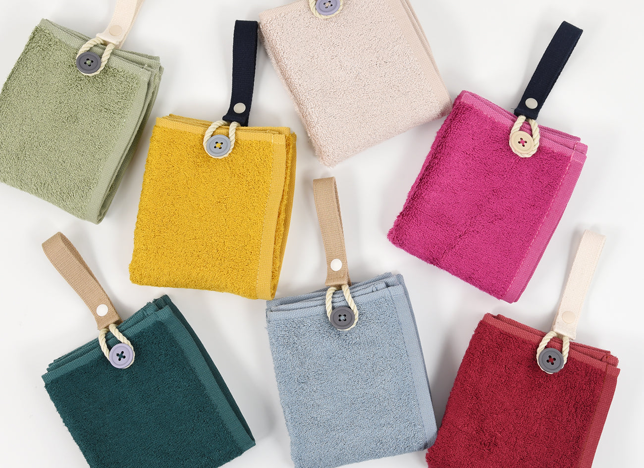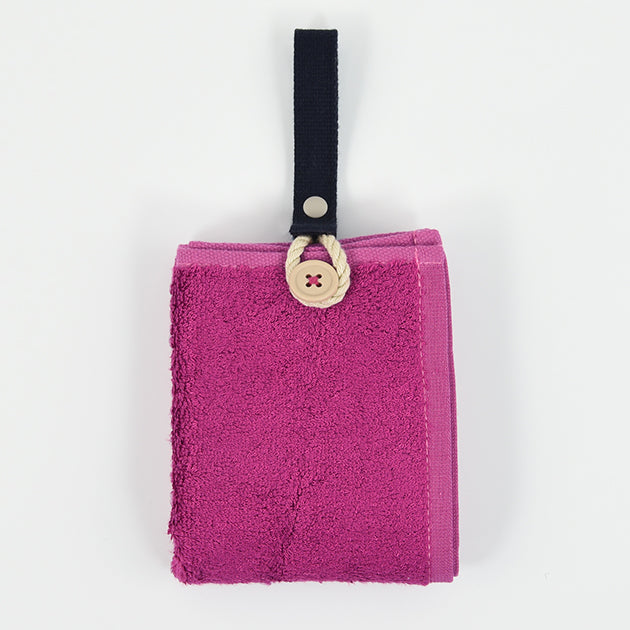 必要なときにさっと使えて、たたんで留めればコンパクトな手のひらサイズに。パイル部分には、サスティナブルな素材としても注目を集める竹を原料としたバンブーレーヨンを使用。シルクのような、なめらかな肌ざわりと高い吸水性・速乾性をもつ優れた素材です。最初のお洗濯でパイルが立ち上がり、ふっくらとしっかり拭けるボリュームに。抗菌防臭加工なので衛生的にお使いいただけます。